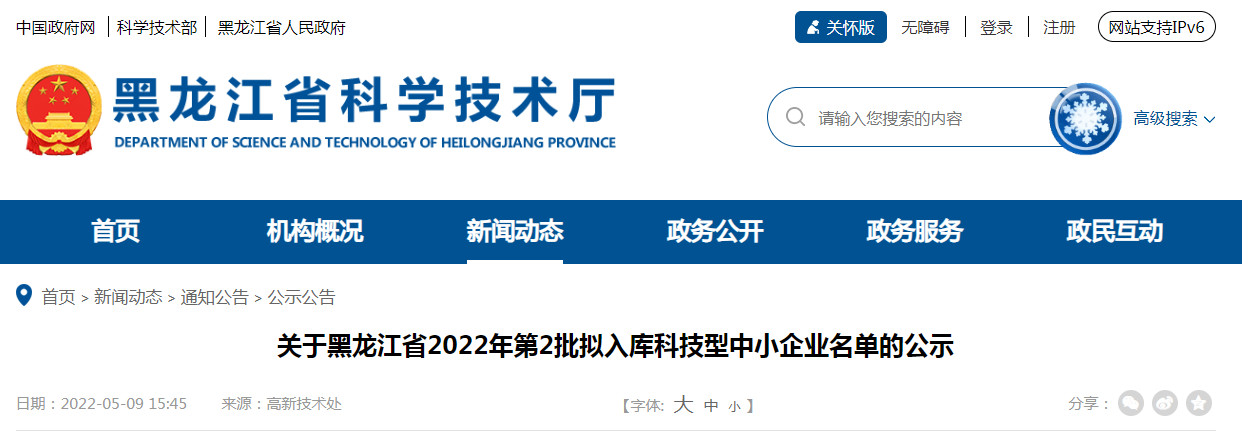 公示|關于黑龍江省2022年第2批擬入庫科技型中小企業名單的公示