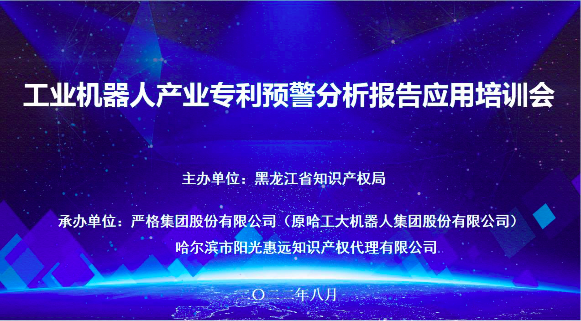 2022年8月2日,工業機器人產業專利預警分析報告應用培訓會在哈爾濱市成功舉辦,省知識產權局、發改委、國資委、衛健委、教育廳、科技廳、工信廳,各市(地)知識產權局,相關高校及企事業單位近200名代表參會。工業機器人產業專利...