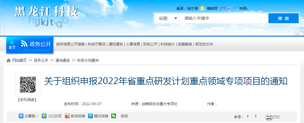 各有關單位: 為貫徹落實國家《科技體制改革三年攻堅方案》及省第十三次黨代會精神和有關要求,著力打好關鍵核心技術攻堅戰,加力推動科技振興和產業振興,根據《黑龍江省省級科技計劃管理改革方案》(黑科聯發〔2022〕10號)、《...