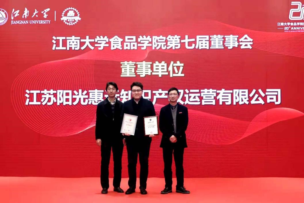 2020年11月27日,江南大學(xué)食品學(xué)院召開了第七屆董事會(huì)成立大會(huì)暨第五屆江南食品產(chǎn)業(yè)論壇。出席會(huì)議的有中國工程院院士、江南大學(xué)校長陳衛(wèi),工信部消費(fèi)品工業(yè)司食品處處長李強(qiáng),中國工程院院士、江南大學(xué)未來食品科學(xué)中心主任陳堅(jiān)、江南大學(xué)食品學(xué)院院長劉元法等,以及第七屆董事會(huì)的各位董事代表。江蘇陽光惠遠(yuǎn)知識(shí)產(chǎn)權(quán)運(yùn)營有限公司成為 “江南大學(xué)食品學(xué)院第七屆董事會(huì)董事單位”,總經(jīng)理張勇應(yīng)邀出席會(huì)議。