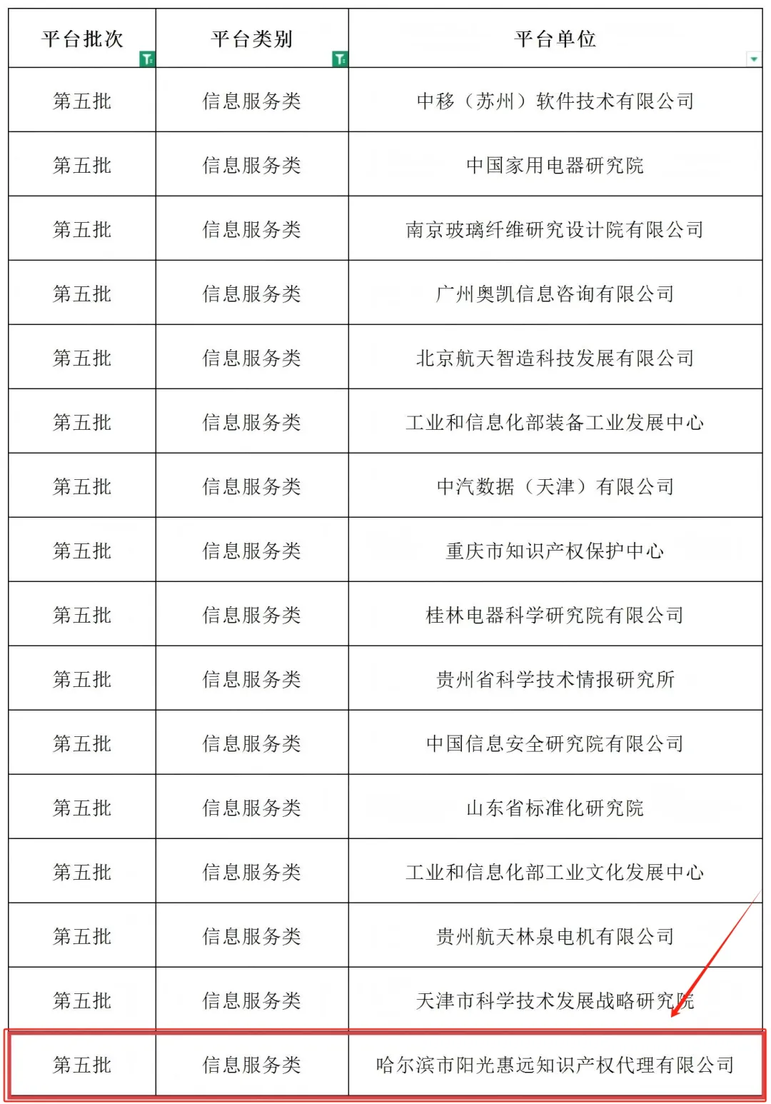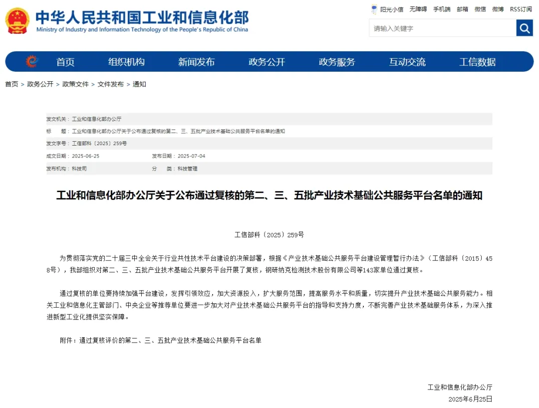 工業和信息化部辦公廳于2025年7月4日公布了通過復核的第二、三、五批產業技術基礎公共服務平臺名單,哈爾濱市陽光惠遠知識產權代理有限公司順利通過第五批產業技術基礎公共服務平臺(信息服務類)復核!