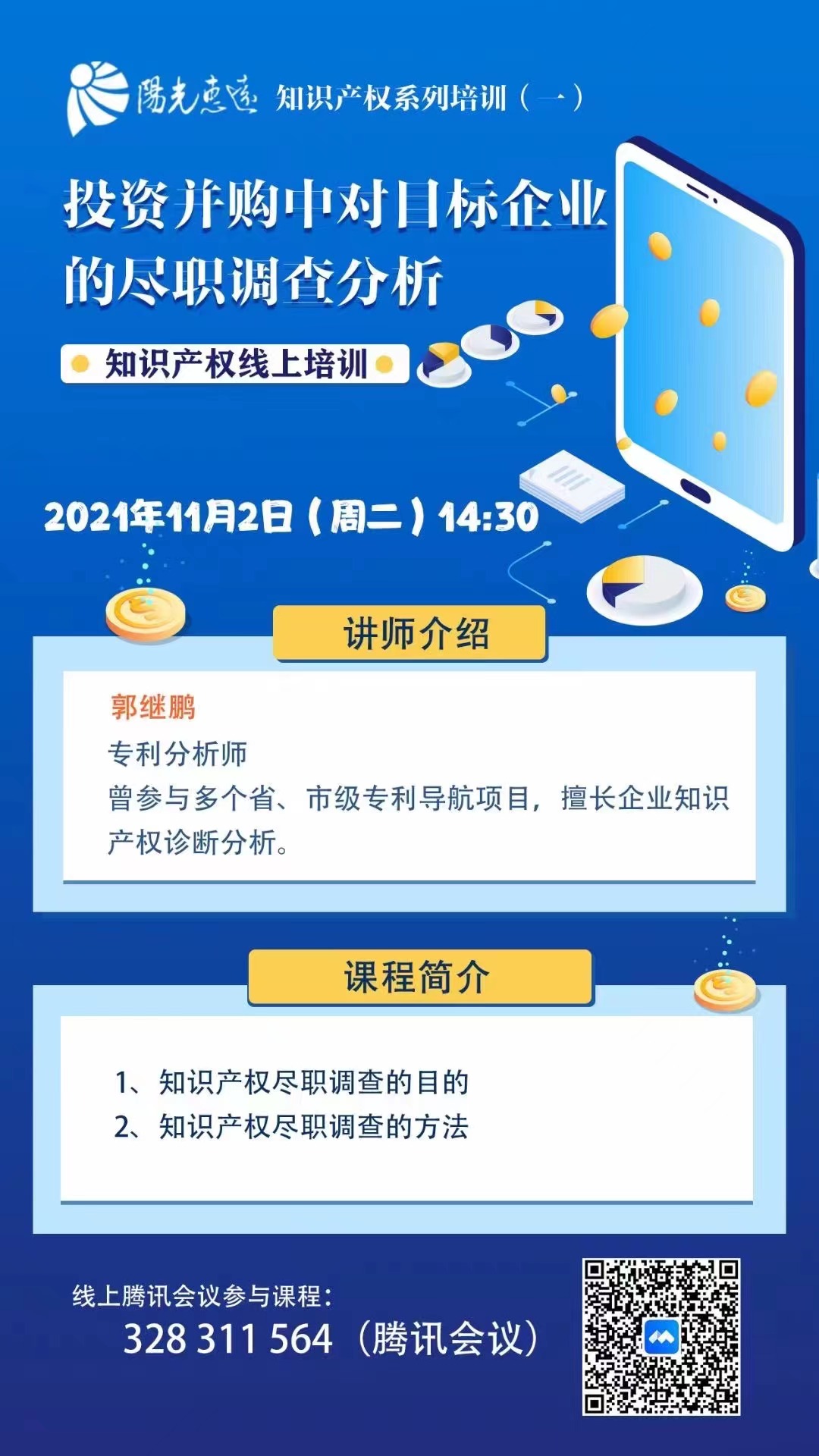 為深化企業知識產權保護意識,全面提升企業在知識產權創造、運用、管理、保護方面的能力,促進企業科技創新能力和競爭力提升,推動經濟發展方式的轉變和經濟結構、營商環境的優化,陽光惠遠知識產權將會在近期持續組織多場知識產權相關培訓。