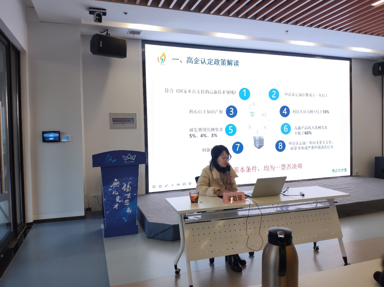 11月25日,陽光惠遠項目部經理梁敬翠作為培訓講師,參與了無錫市高新技術企業協會舉辦的“科技金融政策暨2022年高企申報預備工作”培訓活動,當天共有近50多位企業學員參加。