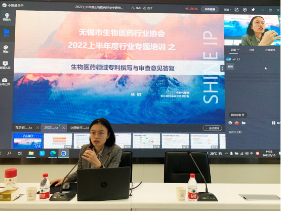 5月10日,無錫市生物醫藥行業協會聯合無錫國際(食品、生物工程)產業知識產權運營服務平臺共同舉辦上半年度生物醫藥行業專題培訓班。本次培訓嚴格按防疫要求進行,采取線上線下同步直播的方式。培訓旨在幫助企業了解相關政策,精準學習生物醫藥專利領域的實務技能,提升企業知識產權創造的能力和水平?,F場32位企業人員,線上400余人。